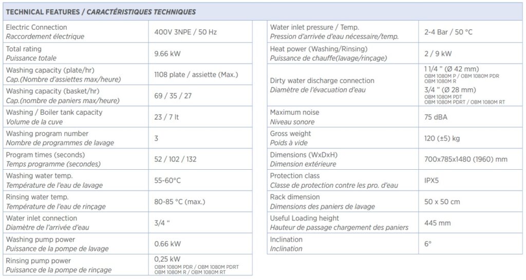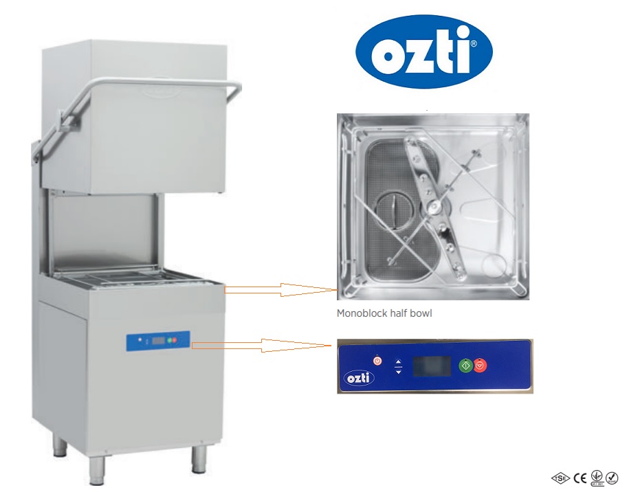 Máy rửa bát công nghiệp Ozti OBM-1080D- PDRT là một dòng máy rửa bát được sản xuất bởi thương hiệu thiết bị nhà bếp công nghiệp Ozti – Thổ Nhĩ Kỳ